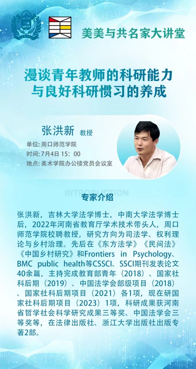 周口师范学院张洪新教授将应邀做客美美与共名家大讲堂