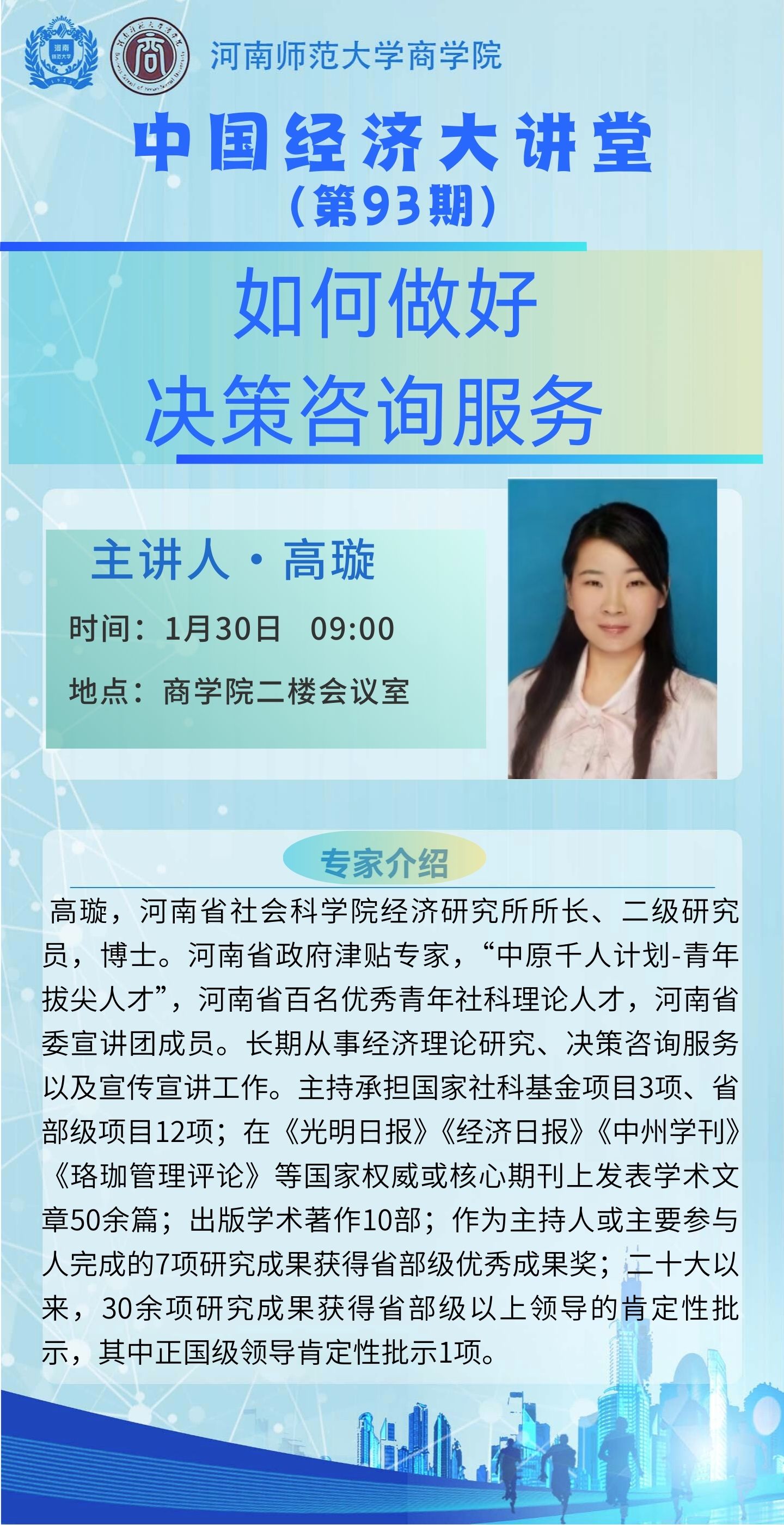 河南省社会科学院高璇研究员将应邀做客“中国经济大讲堂”