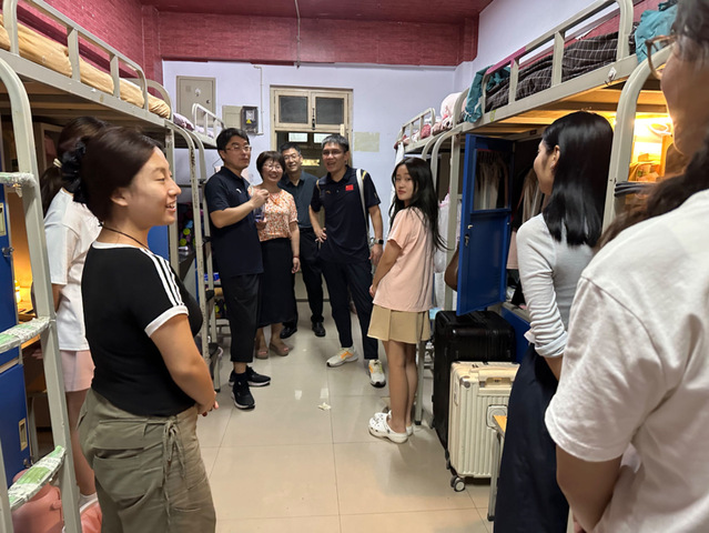 为全面了解2024级研究生新生入学报到情况,指导学生尽快适应新生活,9月1日下午,我院领导班子在院党委书记瞿洪明带领下集体走访研究生宿舍慰问新生。