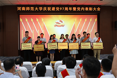 6月29日上午,庆祝建党97周年暨“七一”表彰大会在物理北楼报告厅举行,对两年来在学校建设和发展中涌现出来的党建工作先进单位和先进个人进行表彰。会上,财务处党支部被授予“河南省高等学校先进基层党组织”荣誉称号。