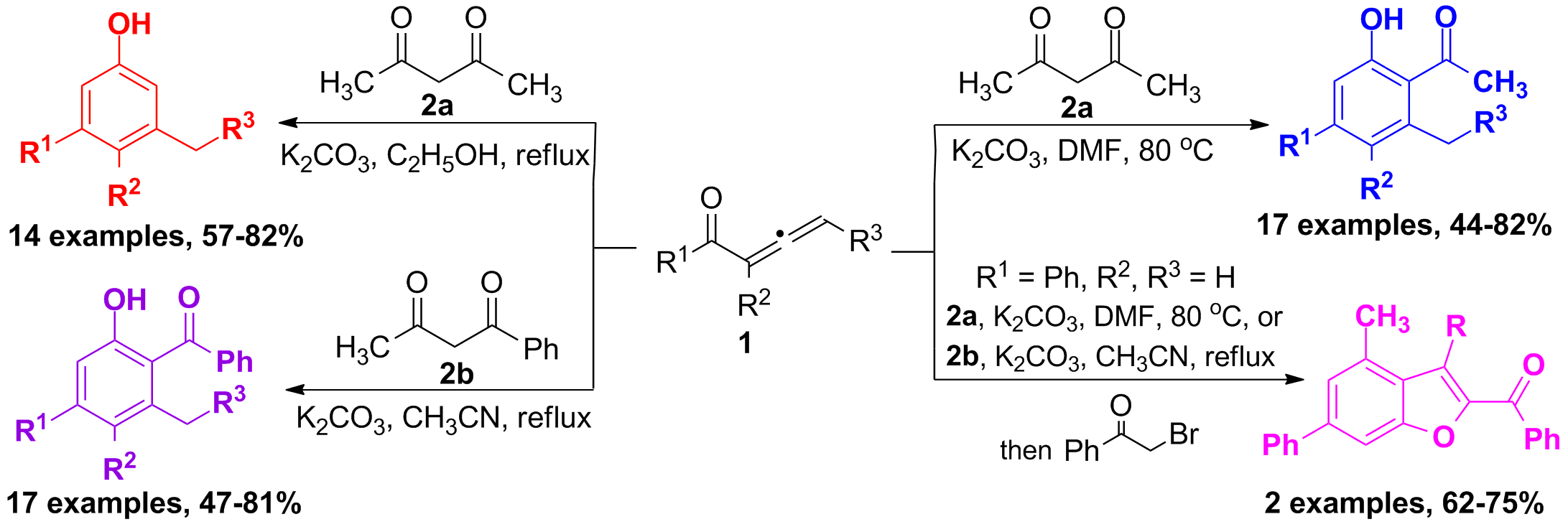9). Xuesen Fan*, Meng Yan, Yan He, Nana Shen, and Xinying Zhang*. Synthesis of Functionalized Phenols via the Cascade Reactions of Allenic Ketones with b-Diketones. Asian J. Org. Chem., 2015, 4, 368–376.