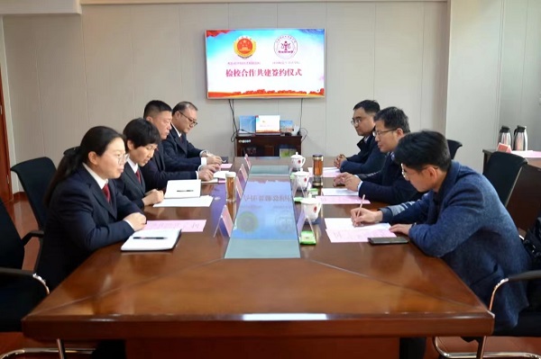 会议伊始,李艳敏对于庆生一行的到来表示热烈欢迎,并简要介绍了中站区院的基本院情、机构设置和检察工作开展情况,表示希望检校合作有利于双方在更广范围、更大空间开展务实合作,最大限度实现资源共享、优势互补、合作共赢,共同推动双方高质量融合发展,打造检校合作的示范标杆。接着,于庆生介绍了法学院办学、教学、科研成果以及未来发展等情况,并表示以更加灵活的方式,促进法学理论和司法实践的密切结合,实现双方人才培养共赢、理论实践共促、信息资源共享。随后,双方签订了《法治人才培养合作协议书》和《专业实习基地协议书》,共同为“专业实习基地”揭牌。
