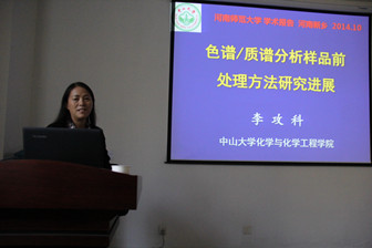 李攻科教授作了题为“色谱/质谱分析样品前处理方法研究进展”的学术报告。李教授首先畅谈了自身的科研教学经历,并介绍了国家自然科学基金选题撰写等方面的经验。最后李教授阐述了色谱/质谱分析样品前处理的重要意义,从样品前处理介质(分子印迹、石墨烯、金属有机框架、纳米阵列)以及辅助前处理方法(微波辅助低温萃取、微波辅助索氏固相萃取等)两方面系统的介绍了课题组近年的研究成果。会后,李攻科教授同与会师生进行了互动交流,并同部分教师进行了座谈。