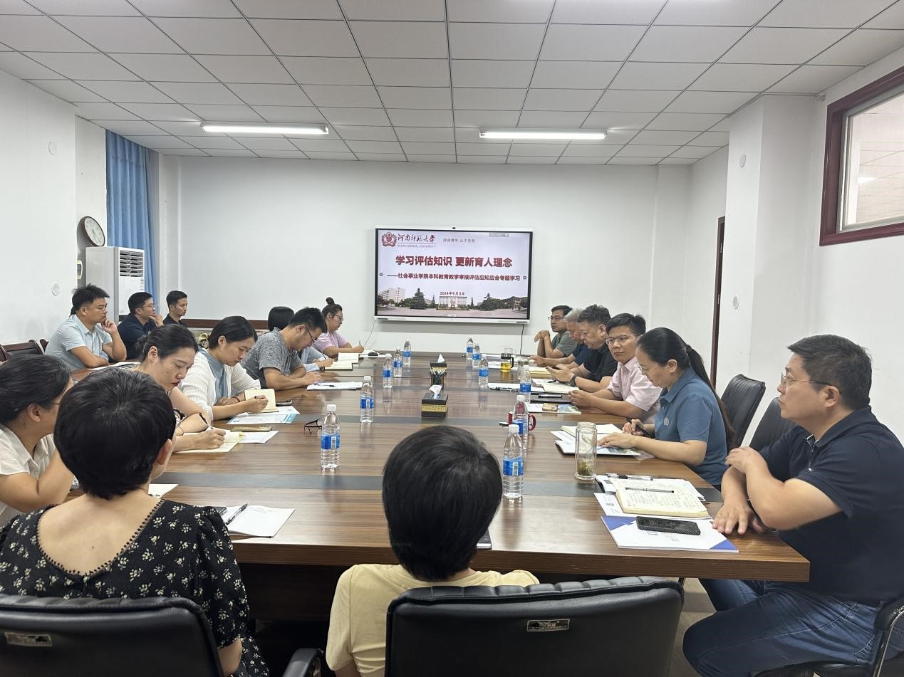 9月3日下午,社会事业学院在崇智楼210会议室召开了本科教育教学审核评估应知应会专题学习会议。此次会议旨在进一步提升全院师生对新一轮本科教育教学审核评估的认识,确保顺利完成评估的各项准备工作。会议由学院副院长陈妍娇主持并领学,全体教职工参与。