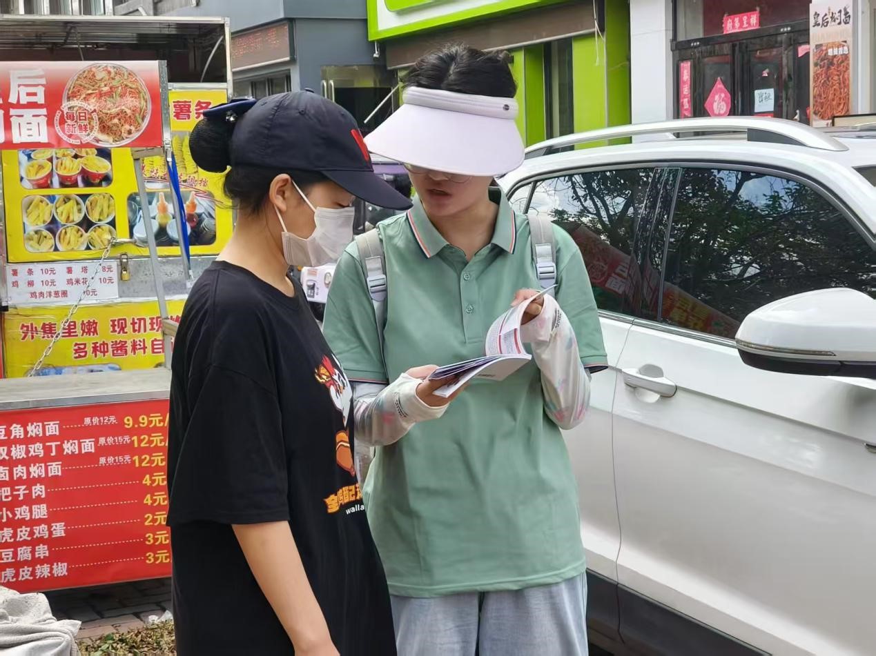 健康生活倡导,共筑和谐基石。午后,宣讲团转场宝龙天地,将目光投向周边社区居民,开展防艾专题宣讲。实践队员不仅再次明晰艾滋病的传播途径,更着重纠正“与患者共餐会感染”等认知误区,呼吁大家以科学理性的态度接纳艾滋病患者,摒弃歧视。烈日炎炎下,成员们热情不减,向居民递上防艾手册,细致讲解“正确使用安全套”“拒绝不规范纹身”等防护建议。社区居民王阿姨听完后深有体会:“以前总对他们敬而远之,现在才知道错了。以后我会用正确方式关心他们,也教家人邻居正确认识艾滋病。”