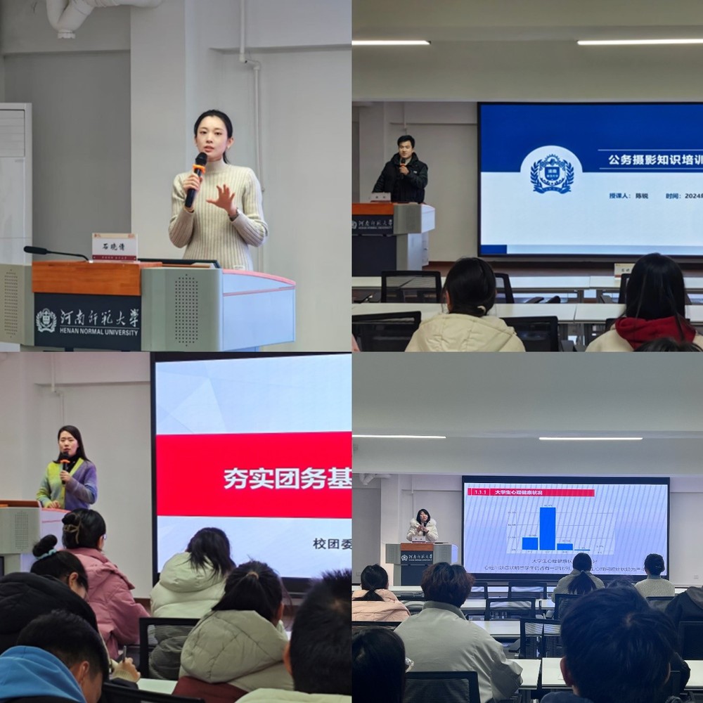 校团委孙琳娜以《夯实团务基础,锻炼担当本领》为题,从团旗、团徽、团歌、团员教育等方面讲解团务基础知识,提升学生干部对组织发展工作的理解,帮助学生干部掌握团组织的基本职能、管理要求及发展流程。
