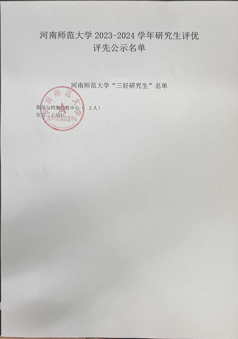 图书与档案信心中心2023-2024学年研究生评优评先公示名单