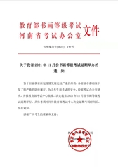 受我省新冠疫情的影响,美术学院考点原定于2021年11月20日举行的教育部书画等级考试将延期举...