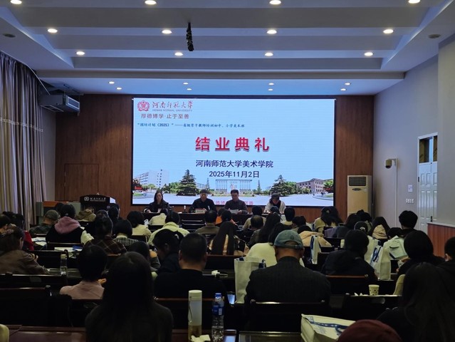 2025 年11月1日下午,由教育厅主办,美术学院承办的“国培计划(2025)”——农村骨干教师能力提升培训项目省级骨干教师培训初中/小学美术班顺利结束,结业仪式在美术学院多媒体报告厅举行。美术学院副院长张笑乾、社会服务工作秘书陈雷、学科班主任马燃、董明慧、生活班主任李胜利、张靖参加了本次结业典礼仪式,仪式由美术学院社会服务工作秘书陈雷主持。