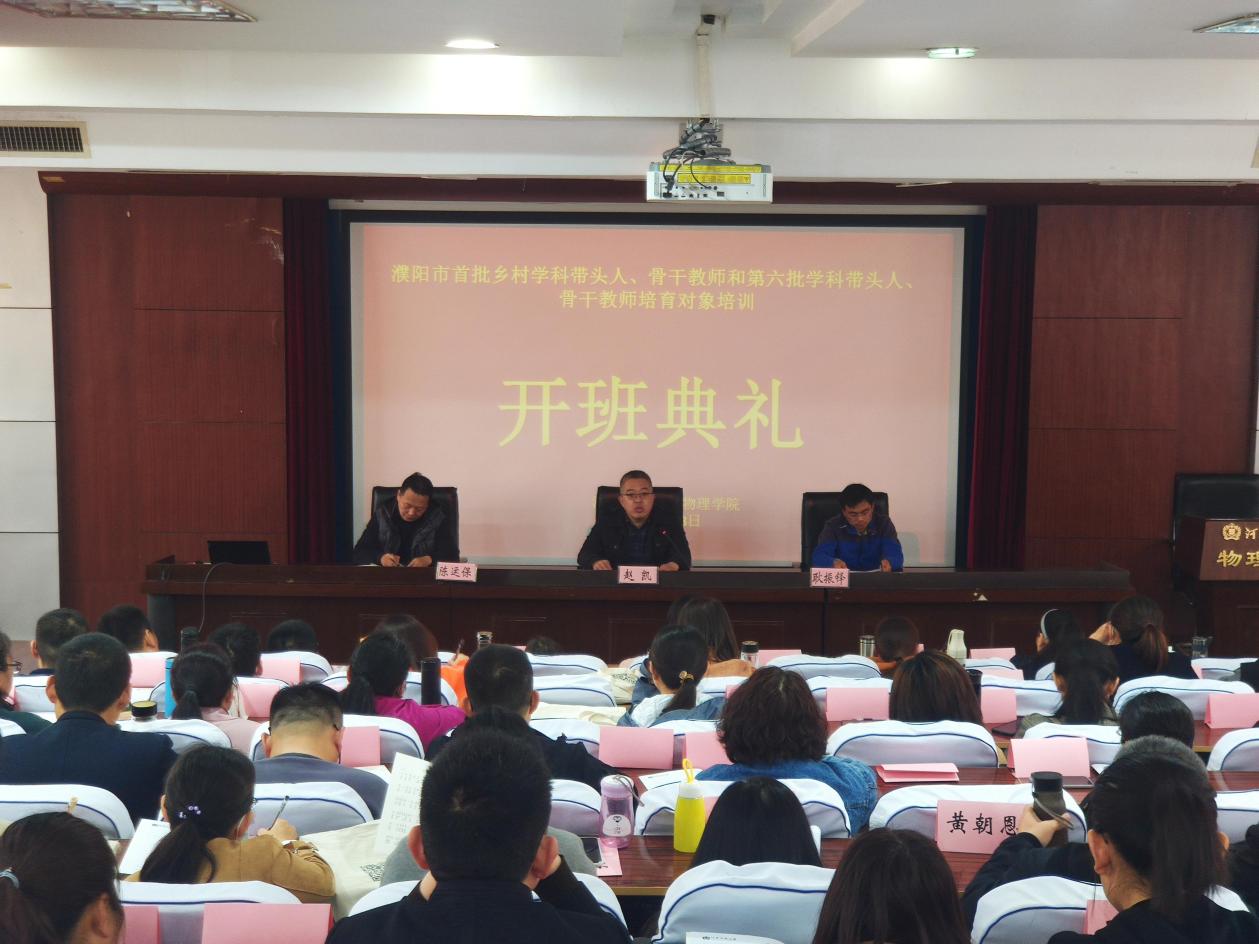4月8日,2021年濮阳市首批乡村学科带头人、骨干教师和第六批学科带头人、骨干教师培育对象培训班开班仪式在我院物理南楼二楼报告厅如期举行。我院副院长赵凯,培训班学科班主任陈运保,生活班主任耿振铎及全体参训学员参加了开班仪式,会议由生活班主任耿振铎博士主持。