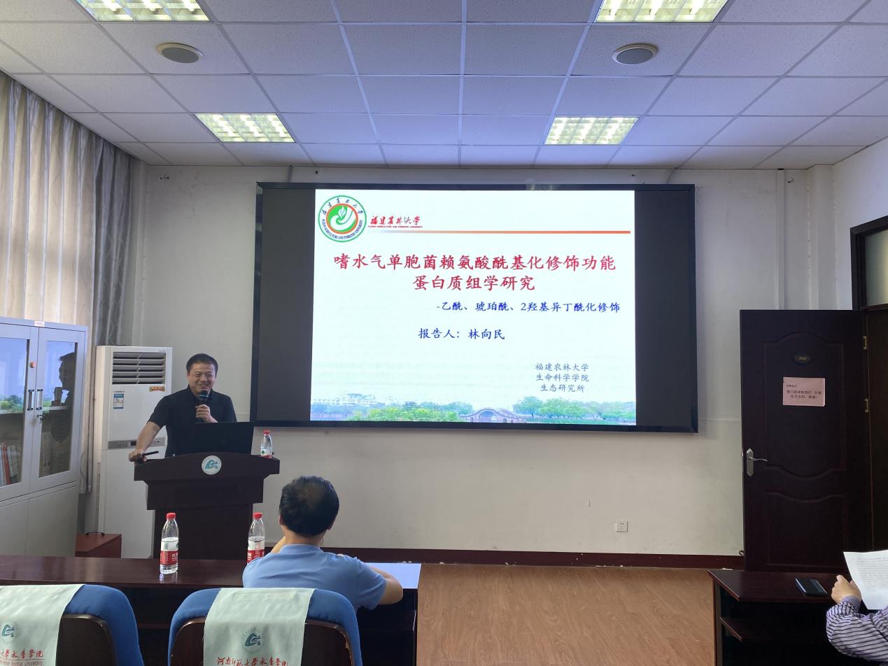 5月21日下午,福建农林大学林向民教授应我院邀请在学院202会议室作了题为“嗜水气单胞菌赖氨酸酰基化修饰功能蛋白质组学研究”的学术报告。水产学院教师、研究生和部分本科生共计60余人聆听报告会,会议由水产学院党委书记孔祥会主持。