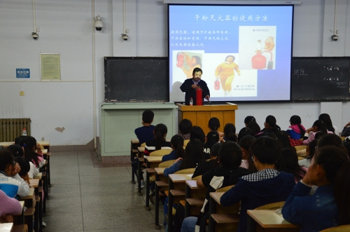 讲座伊始,苏新伟副科长结合近年在各大高校发生的火灾案例,就消防日常检查、疏散逃生的基本常识、消防火灾的预防和应急处置、消防器材的正确使用方法等进行了详细讲解。苏新伟副科长还为同学们现场播放全国火灾现场救援的相关视频,真正的“血的教训”使在场学生真切深刻地感受到火灾的无情及掌握消防知识的重要性。最后,苏新伟副科长针对同学们在实际生活中遇到的一些安全问题进行详细讲解,现场气氛热烈融洽。