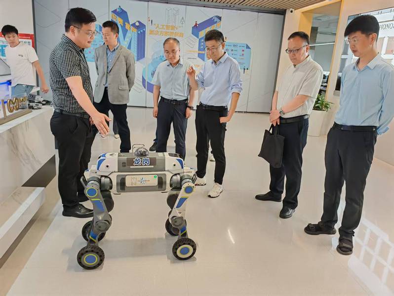 在启迪数字科技有限公司,学院班子实地观摩了具身智能机器狗、AR智能眼镜等前沿科技产品的功能演示,与企业负责人围绕校企协同育人、共建实习实训基地、拓展毕业生高质量就业渠道等议题展开深入探讨,达成初步合作共识。