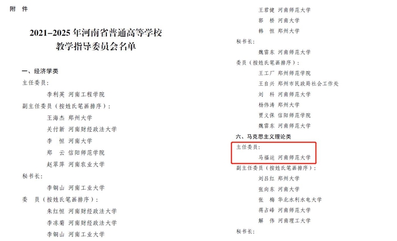 2021河南省普通高等学校马克思主义理论类教学指导委员会主任委员 ~ 马福运