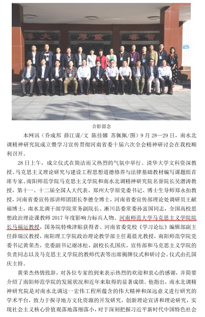 【南阳师范学院】南水北调精神研究院成立暨学习宣传贯彻河南省委十届六次全会精神研讨会在我校召开