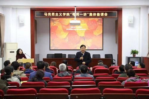 12月18日下午,马克思主义学院在平原楼108会议室举行“每周一讲”集体备课会。党委副书记陈广文出席备课会并讲话。党委宣传部、教务处、学生处、校团委负责人,马克思主义学院全体教师参加。
