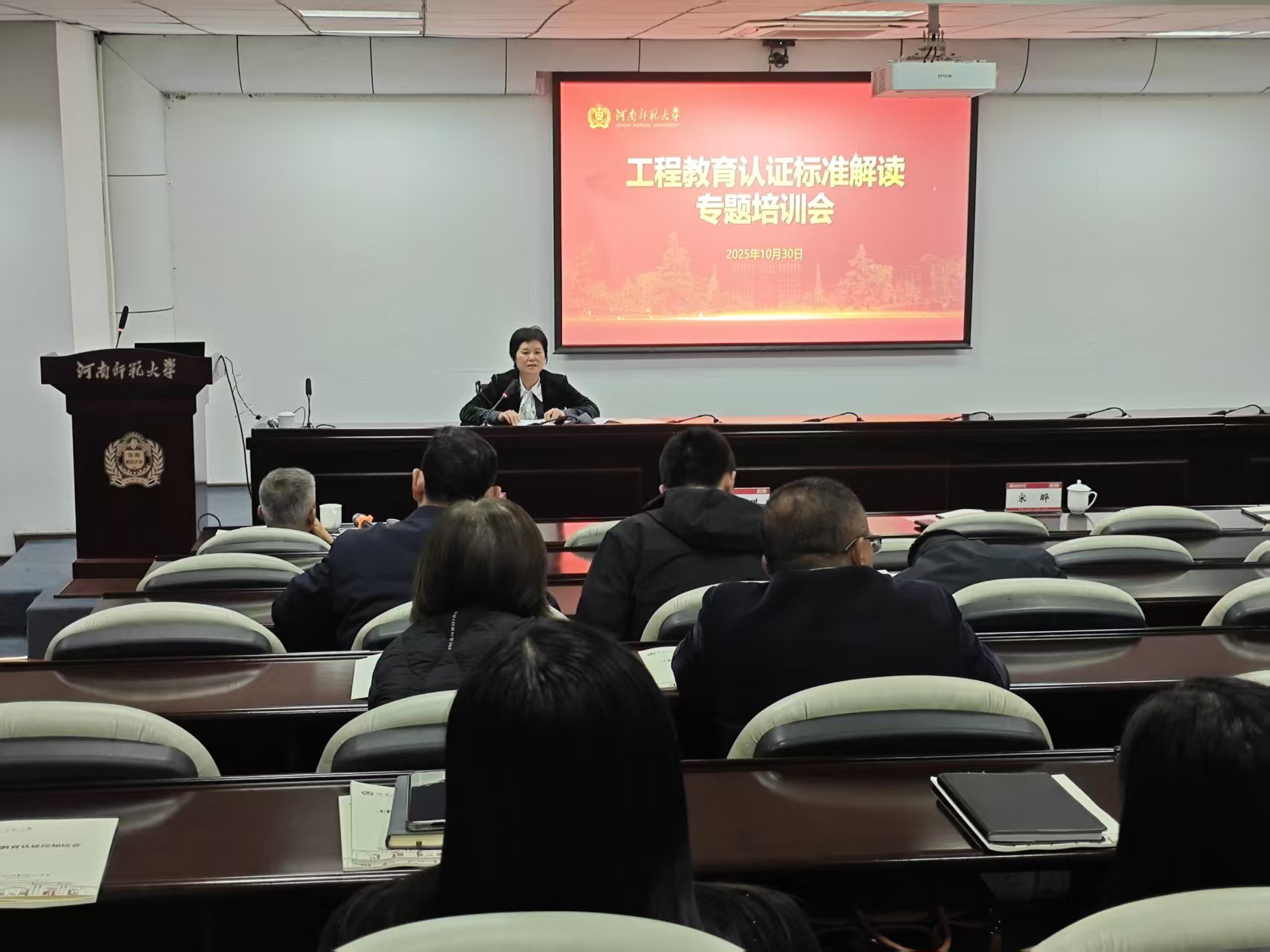 培训会特邀工程教育认证领域专家作专题报告,围绕工程教育认证标准与进校考查要点进行了深入解读。环境学院专业负责人就环境工程专业自评报告作了详细说明。