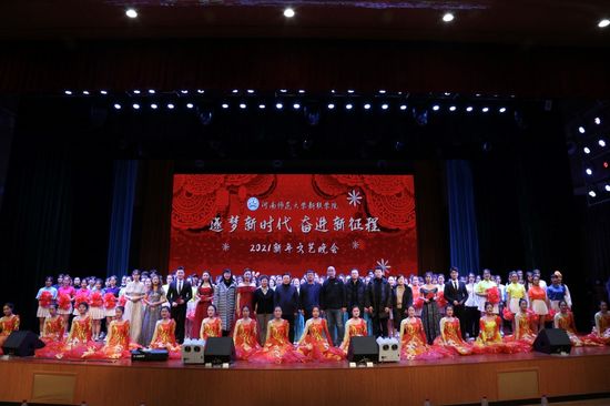 华夏盛世山河秀,春暖新联日月新。12月31日,新联学院“逐梦新时代 奋进新征程”2021新年文艺晚会在多功能报告厅隆重举行。正处级组织员张永胜、金绪泽、段其旺,学院领导李浩、张长伟、朱进、王虎、卢海燕出席晚会。全体教职工、家属和学生代表500余人共同观看演出。