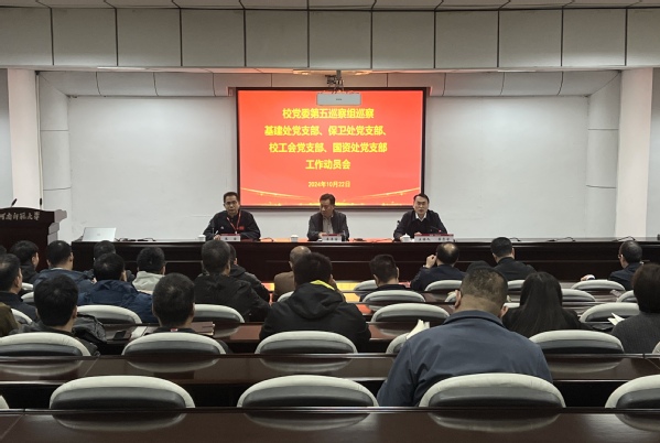 根据校党委巡察工作安排,10月22日下午,校党委第五巡察组巡察基建处党支部、保卫处党支部、校工会党支部和国资处党支部工作动员会在勤政楼第四会议室召开。校党委巡察工作领导小组成员、党委第五巡察组全体成员,被巡察党支部全体教职工参加动员会。会议由机关党委书记李志前主持。