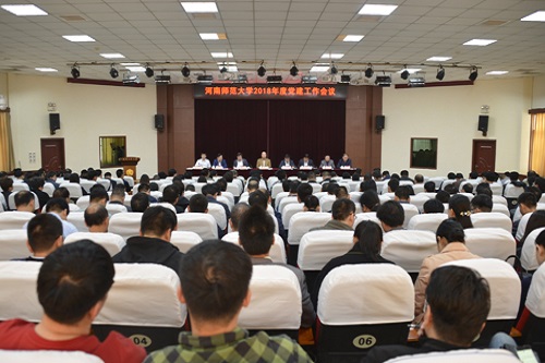 • 4月3日上午,我校2018年度党建工作会议在物理北楼报告厅召开。校领导赵国祥、常俊标、臧振春、陈广文、李雪山、马治军、张尚字、岳杰勇出席会议。全校副处级以上干部,各基层党委(党总支、直属党支部)组织委员、宣传委员、纪检委员、办公室主任,各分工会主席,各学院团委书记,党支部书记代表参加了会议。会议由校长常俊标主持。校党委副书记臧振春传达了中管高校党的建设工作推进会、全省高校组织统战工作研讨会和《中共中央组织部中共教育部党组关于印发高校党建工作重点任务的通知》精神,对我校2018年组织、统战、老干部各项工作进行了安排部署。他指出,要以提升组织力为重点,开展“不忘初心、牢记使命”主题教育,统筹推进领导班子和干部队伍建设、基层党组织和党员队伍建设取得新成效;要凝心聚力,推动统战工作迈上新台阶;要强化服务,推动老干部工作实现新提升。校党委副书记陈广文传达了全省高校宣传思想工作会议精神,明确了我校2018年宣传思想工作的总体要求,并对重点工作进行具体安排。他指出,要继续把学习宣传贯彻习近平新时代中国特色社会主义思想和党的十九大精神引向深入;牢牢掌握意识形态工作领导权,建设具有强大凝聚力和引领力的社