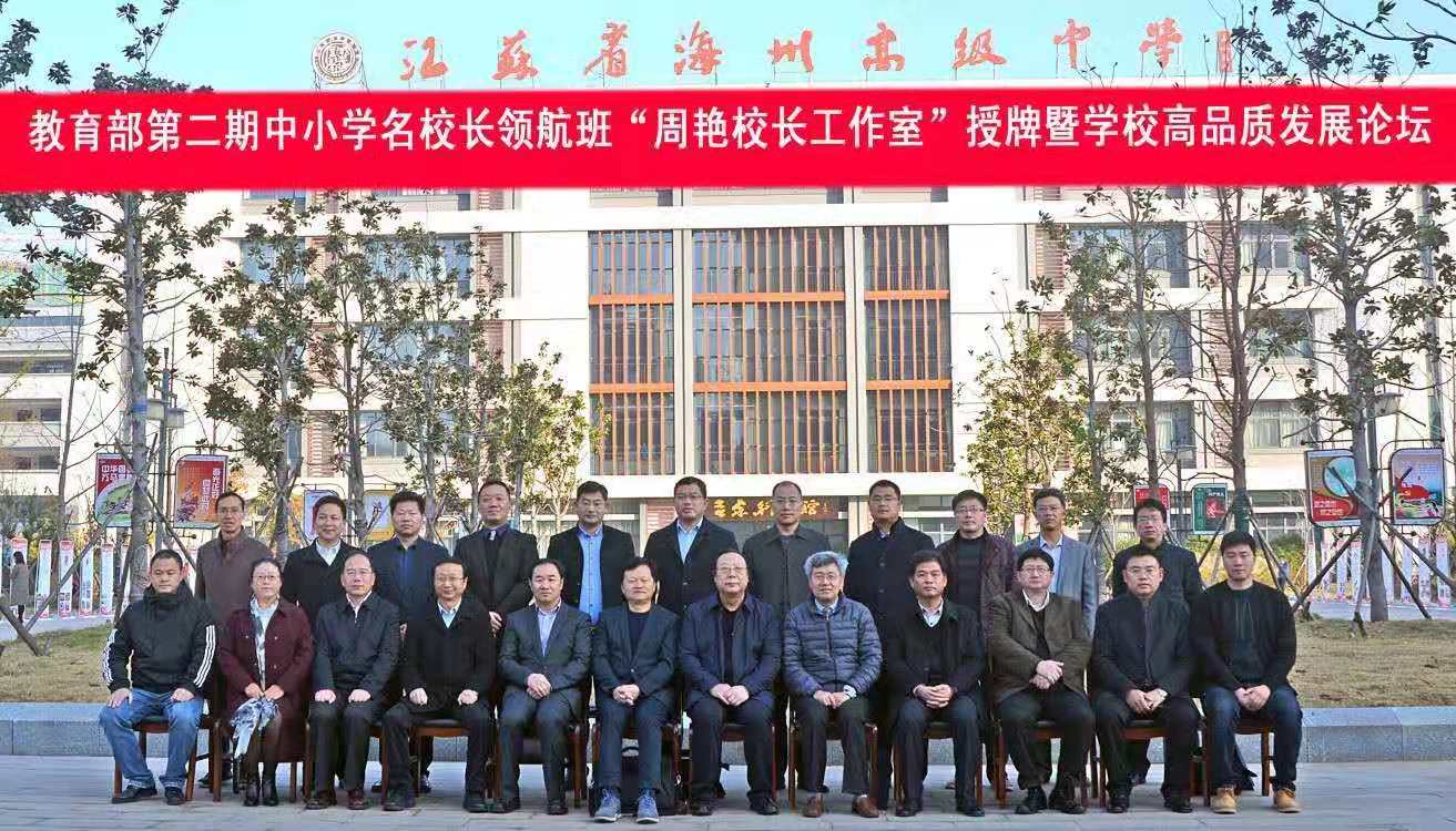 连云港市教育局局长局长在致辞中表示,希望海州高级中学从有效提升学生学科素养做起,变革育人方式、教学评价方式,提高学校课程领导力,细致落实立德树人根本任务。培养基地首席专家李帅军教授,代表名校长领航工程培训基地对“周艳校长工作室”授牌表示祝贺。国家教育行政学院远程培训中心副主任、教育部中小学校长(幼儿园园长)国家级培训项目管理办公室副主任于维涛教授指出,“国培计划”中小学名校长领航工程是层次最高的校长培训平台,旨在培养具有国际教育视野、高尚教育情怀、先进教育思想、深厚教育理论、高尚人格魅力、卓越办学成就、能够引领基础教育改革和发展的教育家型校长。