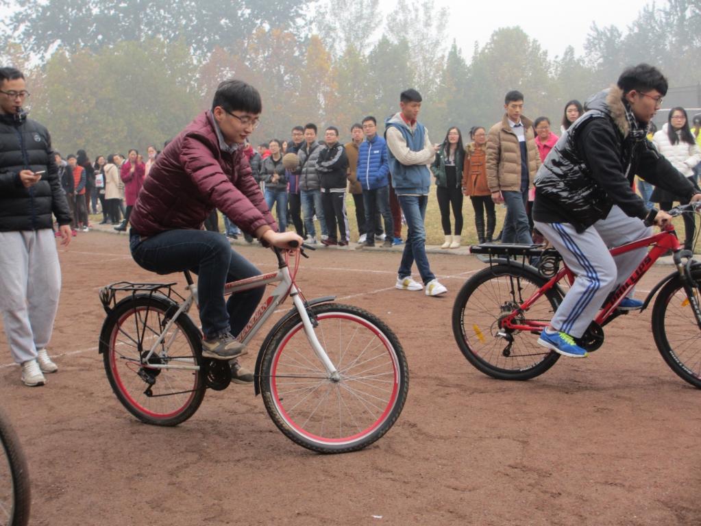 11月14日上午,由校团委主办,校研究生会承办的第二届研究生趣味运动赛在西校区塑胶操场如期展开,共有全校16个学院的研究生参加了比赛。本次趣味运动会主要分四个环节,慢骑自行车、穿越呼啦圈、筷子接龙和脚夹气球接力赛。为了避免出现最后总成绩相等的情况,比赛还设置了加时赛——趣味小火车。