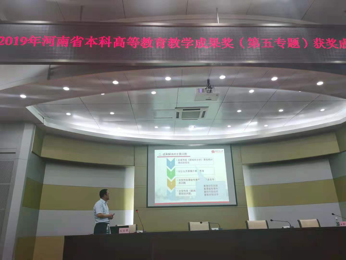 2021年5月26日,2019年河南省本科高等教育教学成果奖(第五专题)获奖成果推广交流会在河南理工大学举行。文学院党委书记段勃教授应邀参会,并在会上做了题为《新闻采访学在线开放课程的研究与实践》的报告,详细介绍了在线开放课程的体系建设、成果解决的主要问题、教学问题的解决方案、成果的创新点、成果的推广应用效果等内容,受到了与会专家们的一致高度好评。